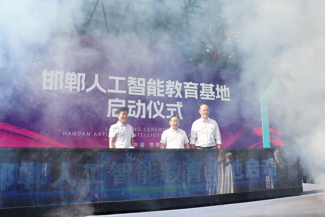 邯山区建投公司董事长韩少堂上台为基地启动仪式进行致辞,介绍了邯郸人工智能教育基地的基本情况。 金大智能副总裁雷常青上台介绍金大智能创新科技(河北)有限公司的运行情况。 邯郸市科协党组书记亢存生为教育基地授牌为“邯郸市科普教育基地” 邯郸市科协党组书记亢存生、邯山区委书记刘海川、金大智能公司董事长王茂林(从左至右)一起上台按下启动按钮,邯郸人工智能教育基地正式启动! 活动现场精彩视频 邯郸人工智能教育基地正式开启,不仅是金大智能的人工智能教育版块业务在河北的布局与落地实践,未来也将充分发挥人工智能教育基地的平台作用,引领带动邯郸当地人工智能教育、科技教育普及,高科技人才实习就业等产业发展,打造全方位、闭环式人工智能教育产业生态链。 基地介绍 邯郸人工智能教育基地总建筑面积15000平米,一共五层楼,可以同时容纳3000人同时参观学习。 一到三层为人工智能科技展厅 涵盖16 个主题展区,上百件人工智能机器人展品,通过参观、互动体验,充分为青少年打开机器人领域的大门,全面详细地进行人工智能与机器人相关知识科普。 四五层为教学活动中心 涵盖2个竞赛场、37间科创教室及1个室内研学拓展区。 基地定位 基地以A1科普-AI科创-AI科培为主线,打造集教、学、研、展、赛为一体的人工智能教育基地,构建区域人工智能教育创新实践枢纽。 集互动体验、拓展提升、赛事活动、展示交流、能力培训于一体的通用型人工智能与创客教育实践中心。 立足河北搭建人工智能与机器人技术创新与交流平台,助力新时代高水平高技能人才培养。 创造AI美好生活 扫码关注我们