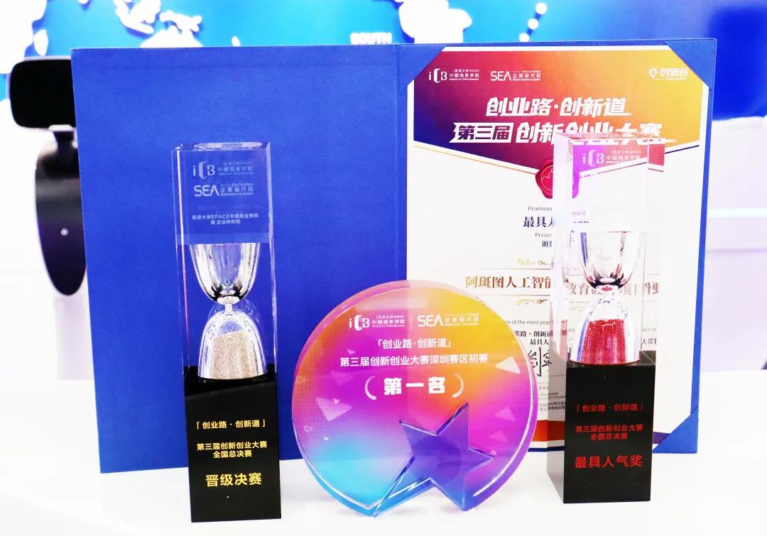 2022年「创业路·创新道」第三届创新创业大赛由香港大学SPACE中国商业学院暨企业研究院主办,历经招募、海选及初赛环节的激烈角逐,金大控股的阿斑图人工智能教育硬件项目在深圳赛区初赛中获得“第一名”,并一路过关斩将,成功打入决赛圈,在全国总决赛中获得「最具人气奖」