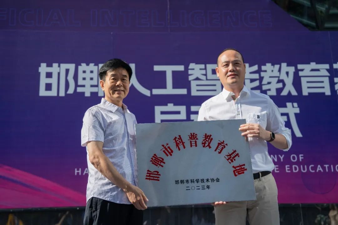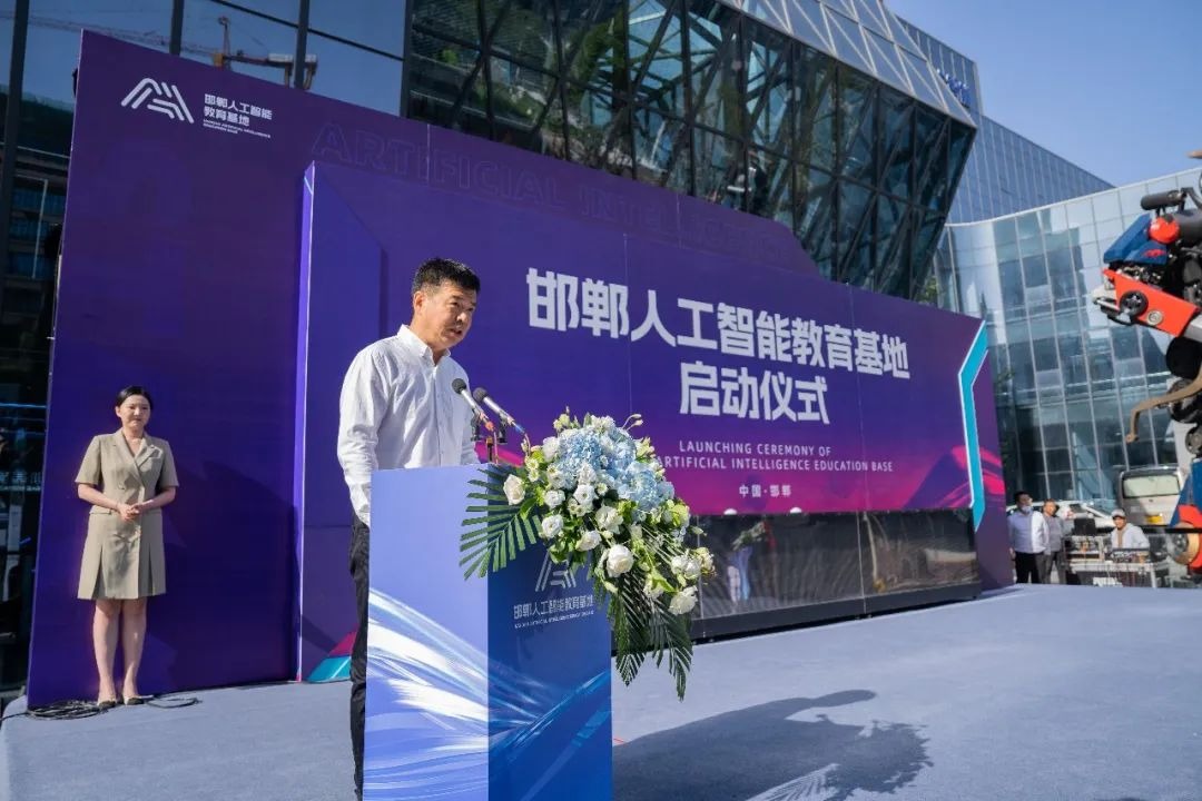 邯山区建投公司董事长韩少堂上台为基地启动仪式进行致辞,介绍了邯郸人工智能教育基地的基本情况。 金大智能副总裁雷常青上台介绍金大智能创新科技(河北)有限公司的运行情况。 邯郸市科协党组书记亢存生为教育基地授牌为“邯郸市科普教育基地” 邯郸市科协党组书记亢存生、邯山区委书记刘海川、金大智能公司董事长王茂林(从左至右)一起上台按下启动按钮,邯郸人工智能教育基地正式启动! 活动现场精彩视频 邯郸人工智能教育基地正式开启,不仅是金大智能的人工智能教育版块业务在河北的布局与落地实践,未来也将充分发挥人工智能教育基地的平台作用,引领带动邯郸当地人工智能教育、科技教育普及,高科技人才实习就业等产业发展,打造全方位、闭环式人工智能教育产业生态链。 基地介绍 邯郸人工智能教育基地总建筑面积15000平米,一共五层楼,可以同时容纳3000人同时参观学习。 一到三层为人工智能科技展厅 涵盖16 个主题展区,上百件人工智能机器人展品,通过参观、互动体验,充分为青少年打开机器人领域的大门,全面详细地进行人工智能与机器人相关知识科普。 四五层为教学活动中心 涵盖2个竞赛场、37间科创教室及1个室内研学拓展区。 基地定位 基地以A1科普-AI科创-AI科培为主线,打造集教、学、研、展、赛为一体的人工智能教育基地,构建区域人工智能教育创新实践枢纽。 集互动体验、拓展提升、赛事活动、展示交流、能力培训于一体的通用型人工智能与创客教育实践中心。 立足河北搭建人工智能与机器人技术创新与交流平台,助力新时代高水平高技能人才培养。 创造AI美好生活 扫码关注我们